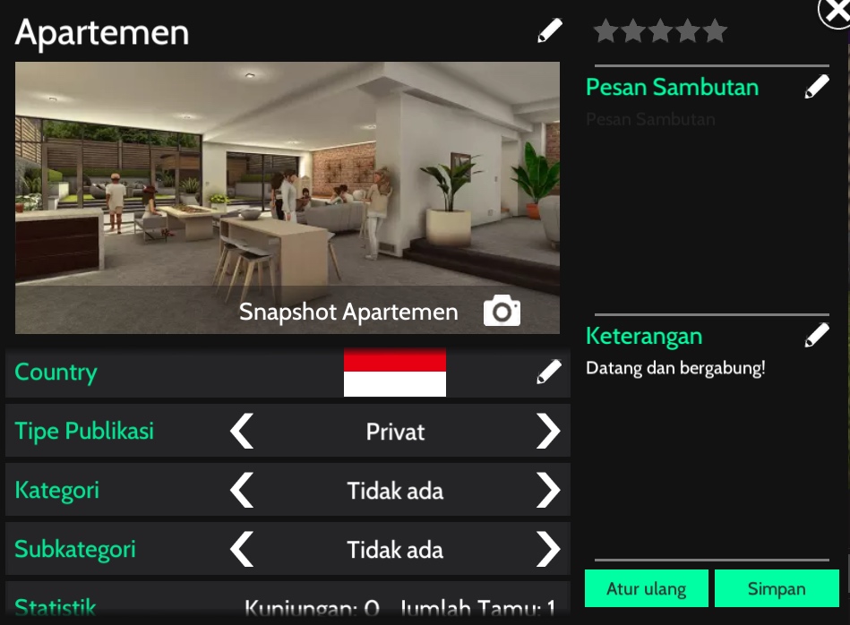 Untuk mengubah atau mengatur snapshot apartemen Anda: